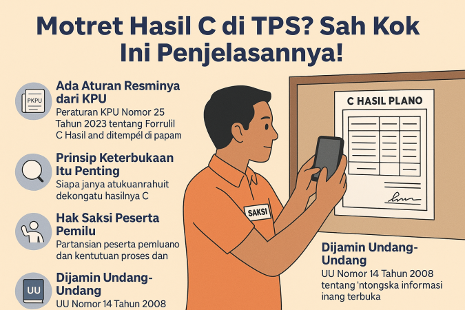 Pemilu itu milik rakyat, jadi prinsipnya kudu terbuka dan transparan. Semua yang hadir di TPS punya hak buat tahu hasilnya. Dan kalau pengen motret hasil C Plano yang udah dipajang, itu sah-sah aja.