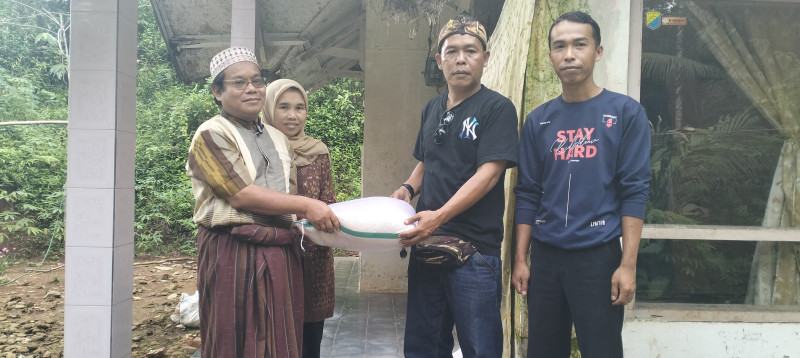 Tak jauh dari situ, ada juga Mak Anah yang nasibnya nggak jauh beda. Rumah kayunya udah rapuh, atap nyaris runtuh. Sebagai bentuk kepedulian, H. Wahyu ngasih masing-masing 10 kg beras dan uang Rp100.000 buat Mak Atikah dan Mak Anah. Mungkin nilainya kecil buat sebagian orang, tapi sangat berarti buat mereka yang hidup dalam keterbatasan.