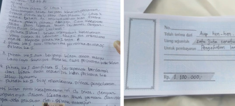Kejadian bermula dari laporan yang diajukan Rudi Erwindi, korban yang merasa dianiaya oleh Asep di area parkir sebuah kafe pada 31 Mei 2025. Namun situasi berubah ketika Asep bersama keluarganya datang langsung ke rumah Rudi pada 12 Juni 2025 buat minta maaf secara langsung. Keduanya sepakat damai, bahkan tanda tangan di atas materai, disaksikan para tokoh masyarakat.