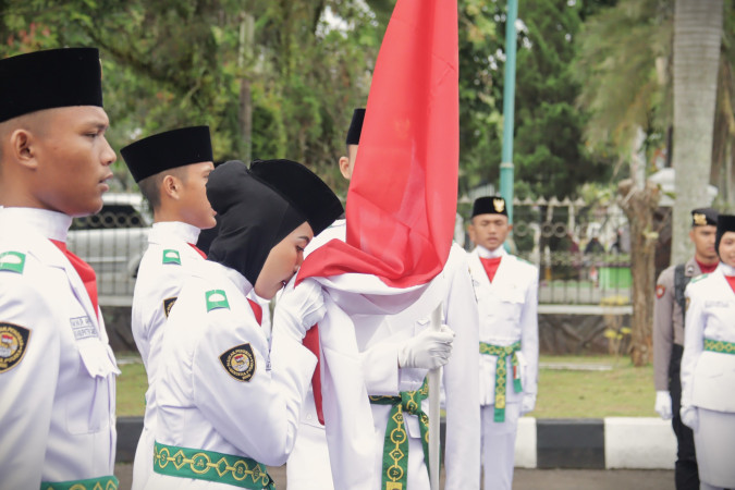 Bupati Herdiat sendiri yang membacakan naskah pengukuhan. Dengan lantang ia menegaskan, jadi anggota Paskibraka itu bukan cuma soal kebanggaan, tapi juga bentuk pengabdian nyata ke bangsa dan negara.