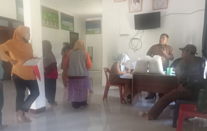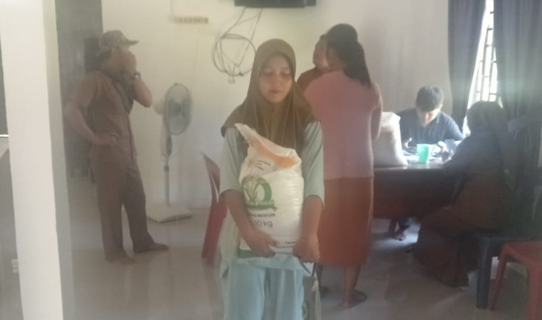 Kepala Desa Blangkahan, Paino, bilang kalau kantornya sengaja dijadikan titik kumpul dan penyimpanan beras karena tempatnya cukup luas. Jadi lebih gampang buat ngatur distribusi ke desa-desa sekitar.