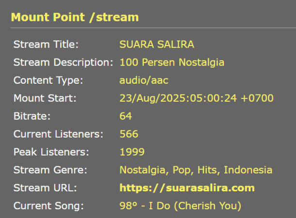 Statistik jumlah pendengar aktif juga dapat dipantau secara langsung melalui tautan: https://suarasalira.com/statistik/