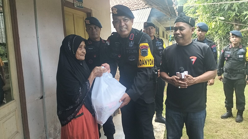 SUARA SALIRA | KAB. TASIKMALAYA – Ada pemandangan hangat di Dusun Maribaya, Desa Ancol, Kecamatan Cineam, Jumat (26/9/2025). Brimob Polda Jabar Batalyon D Pelopor Cineam turun langsung ke masyarakat buat berbagi sembako khusus untuk para lansia.