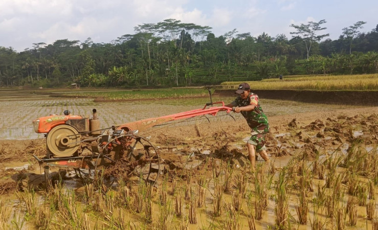 Meski berseragam loreng, Serka Rahmat nggak ragu kotor-kotoran. Ia ikut ngendalikan traktor sambil bantu warga yang lagi siapin lahan buat masa tanam padi. Momen seperti ini jadi bukti nyata kedekatan TNI dengan masyarakat di akar rumput.
