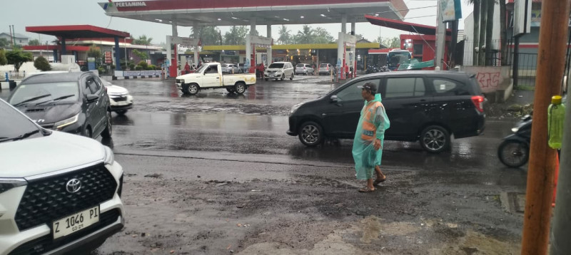 Di balik ramainya suasana dan transaksi yang terus berjalan, tersimpan kisah haru dari Nunung, seorang juru parkir yang sehari-hari menggantungkan hidupnya di area kedai tersebut. Dengan rompi oranye dan jas hujan plastik, ia setia mengatur keluar masuk kendaraan pengunjung di tengah cuaca mendung.