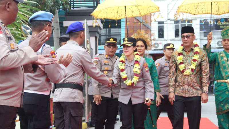 Setelah itu, rangkaian tradisi penyambutan dilaksanakan di Mapolres Karimun. Mulai dari pemayungan, pengalungan bunga oleh Polisi Cilik, hingga sambutan hangat dari seluruh personel Polres Karimun, semuanya berlangsung dengan suasana akrab dan penuh rasa kekeluargaan.