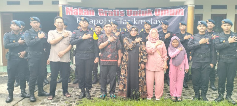 Tak hanya berbagi sembako, kegiatan sosial ini juga dilengkapi dengan program Makan Gratis Untuk Umum. Di bawah spanduk bertuliskan “Rajapolah Tasikmalaya”, personel Brimob bersama para tokoh masyarakat menunjukkan komitmen untuk terus hadir dan melayani.