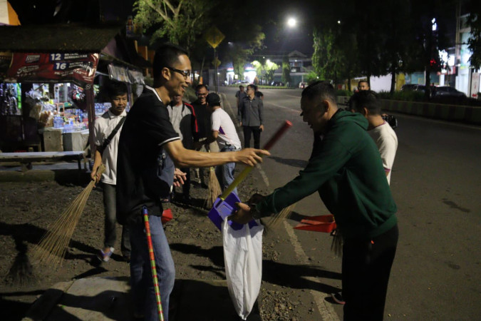 Menariknya, aksi bersih-bersih ini dilakukan pada malam hari. Meski suasana sudah gelap, semangat para ASN tetap terasa. Dengan peralatan sederhana seperti sapu lidi dan kantong sampah, mereka membersihkan area yang telah ditentukan secara gotong royong.