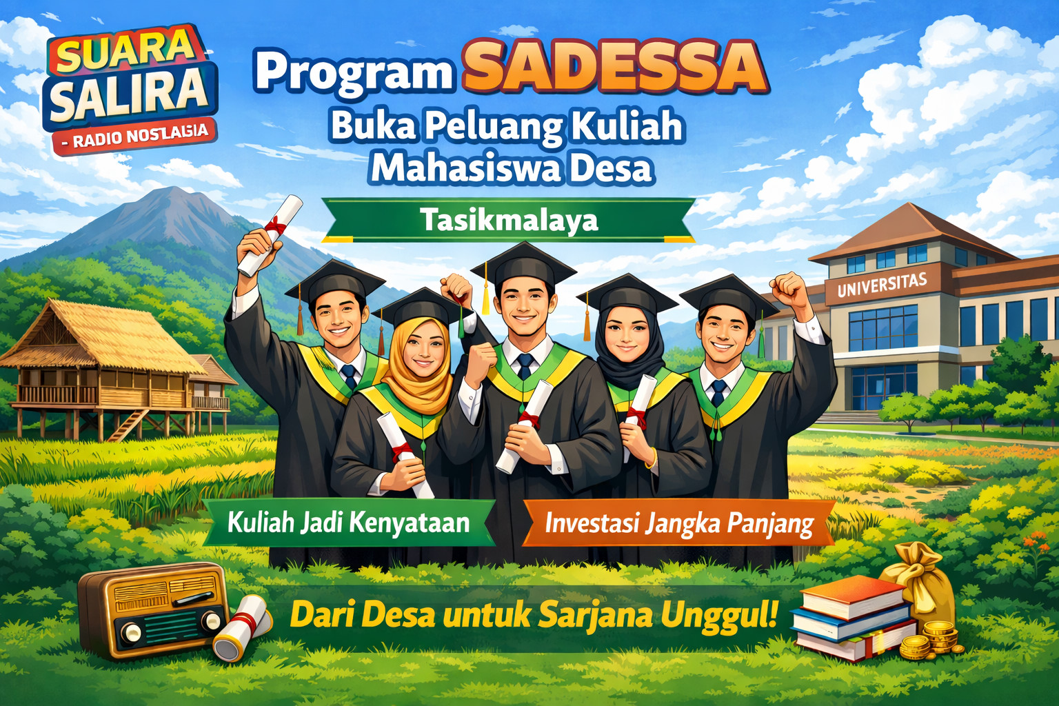 SUARA SALIRA | EDITORIAL – Program SADESSA kembali jadi perbincangan hangat di Tasikmalaya. Program Satu Desa Satu Sarjana ini hadir sebagai solusi nyata agar anak-anak desa punya kesempatan kuliah di perguruan tinggi negeri.